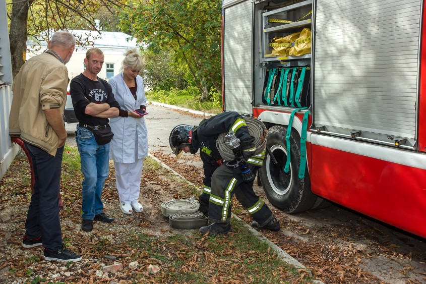 В учениях принял участие боевой расчет пожарно-спасательной части №1 в составе четырех человек. Также с медперсоналом отработали навыки пользования огнетушителем