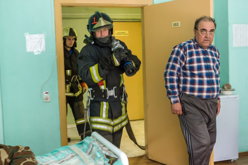 Тактико-специальные занятия по отработке эвакуации при пожаре и практике тушения очага возгорания в больнице №4 им. А. С. Хлюстина прошли во вторник, 11 сентября. Учебный очаг возгорания пожарные обнаружили быстро, персонал и пациентов эвакуировали из здания тоже оперативно.