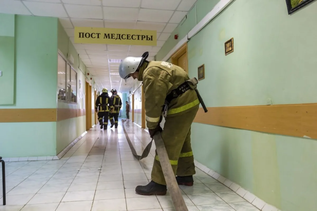 Возгорание произошло в палате № 103 пульмонологического отделения больницы. Пострадавших нет, так как тревога была учебная.