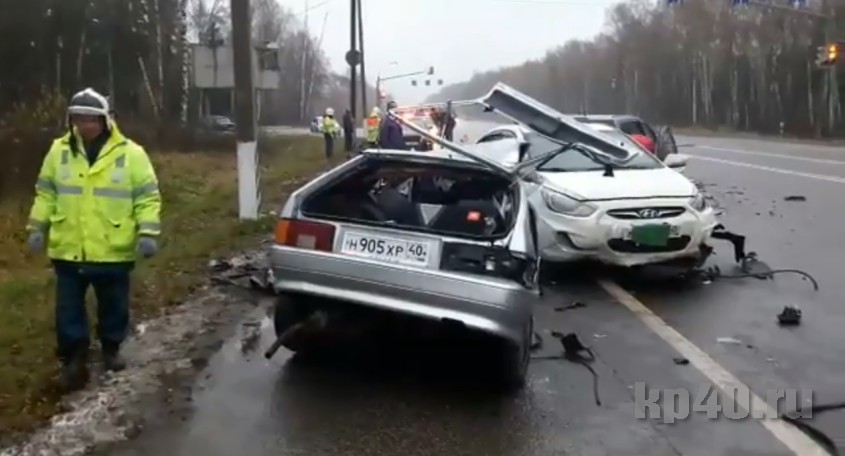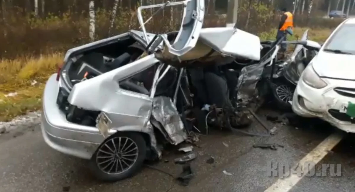 По предварительным данным, водитель ВАЗ 21114 двигался со стороны Обнинска, не справился с управлением и выехал на встречную полосу, где столкнулся с «Опелем» и «Хендаем».