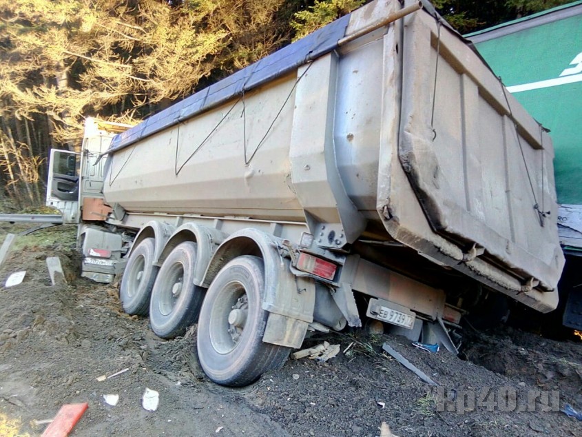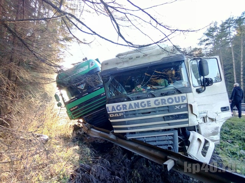 После столкновения оба грузовика вылетели в кювет. К счастью, никто из людей не пострадал.