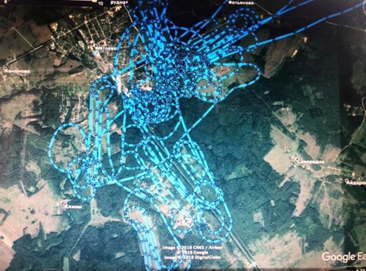 Голубые треки на карте – полёты ВПСО «Ангел».