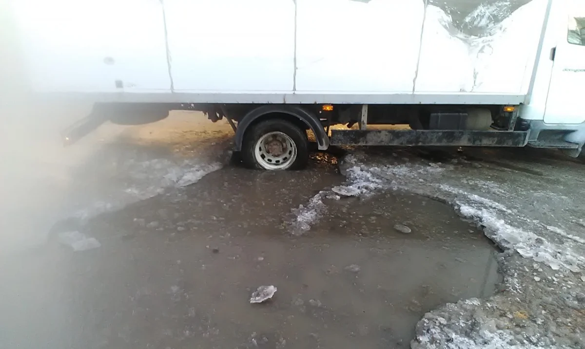 - Я хотел объехать яму во всё дорожное полотно, но лёд провалился, и в итоге машина повисла, - описал автомобилист свои злоключения в группе «Калуга жесть» в социальной сети «ВКонтакте». - Колёса 17,5 дюйма скрыло, нижнюю часть диска скрыло под водой.