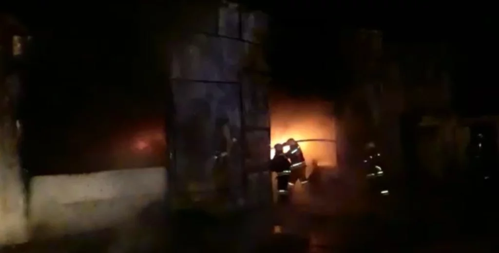 Вечером в воскресенье, 25 ноября, на улице Московской в Калуге в районе путепровода сгорело здание шиномонтажа.