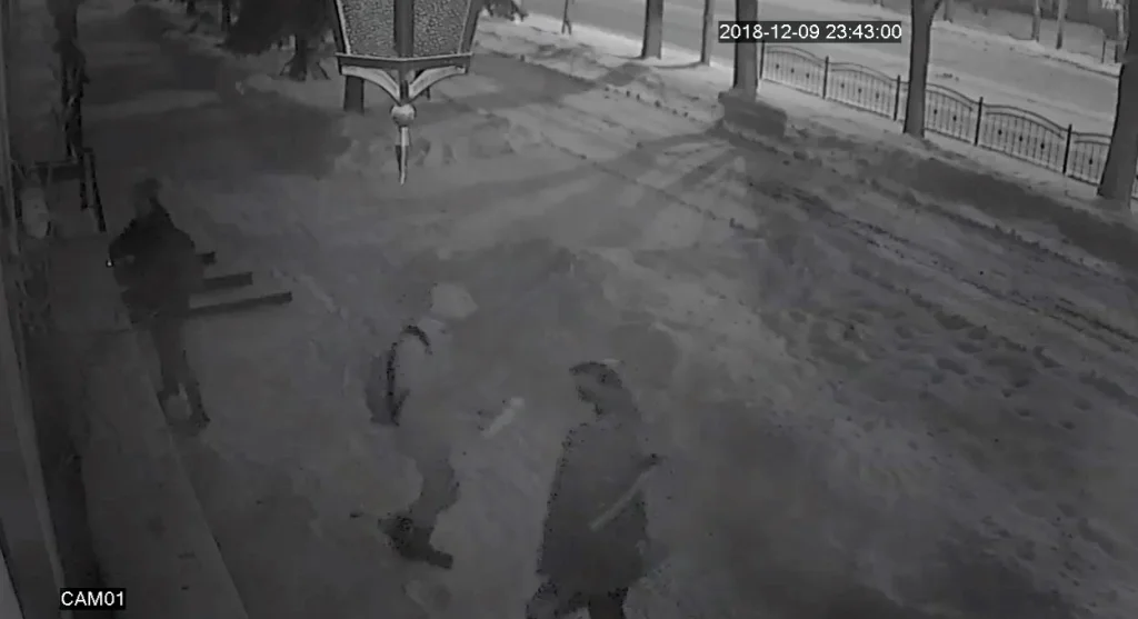Происшествие попало на видео. На записи хорошо видно, как четверо молодых людей растаскивают украшения, установленные накануне.