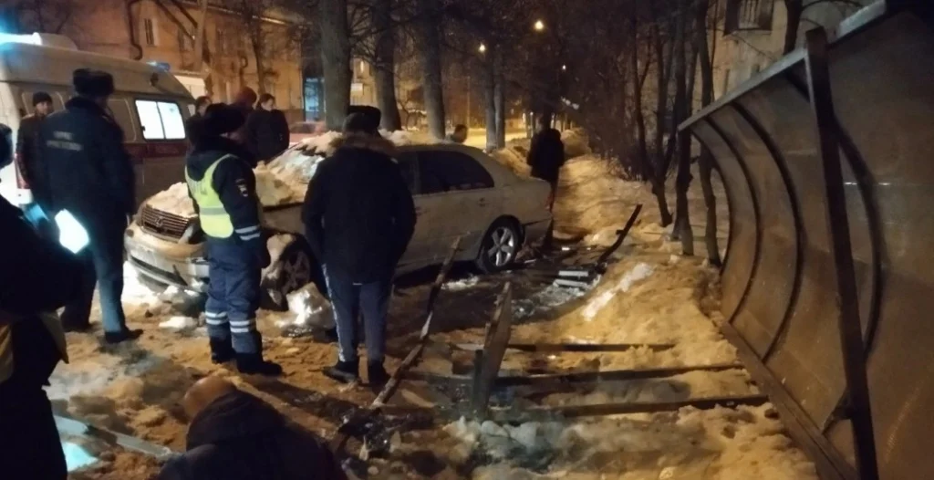 «Лексус» снёс двух пешеходов и остановку на Салтыкова-Щедрина