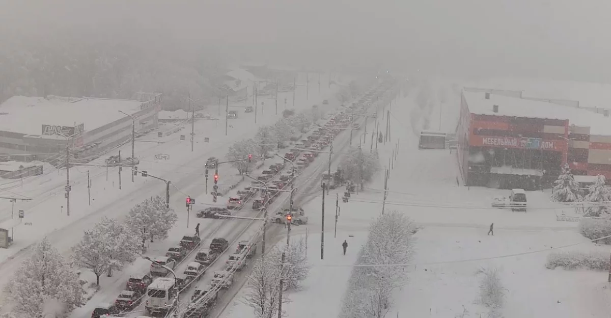 Движение в сторону центра города с Правого берега серьезно затруднено. Пробка растянулась до 3-го Академического проезда.