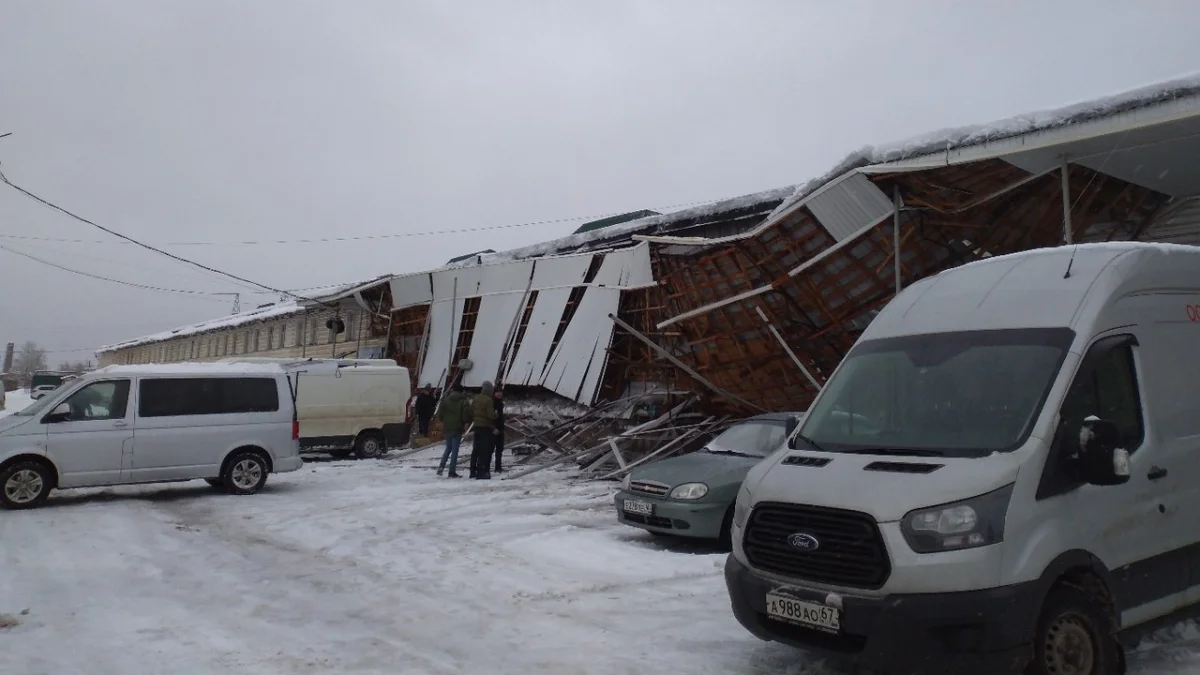 Навес рухнул на торговой базе в Калуге