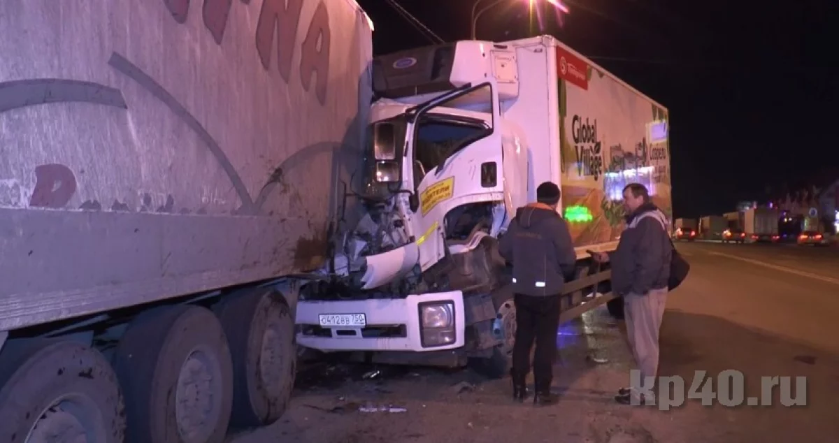 Около 20:00 в понедельник, 18 февраля, на трассе М3 «Украина» в черте Балабаново произошла авария. В столкновении двух грузовиков водители чудом не получили травм.
