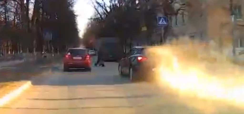 Судя по этим кадрам, человек переходил дорогу по «зебре», одна из машин остановилась, чтобы его пропустить, а водитель двигавшегося по соседней полосе «Опеля» слишком поздно начал тормозить. Сбив пешехода, легковушка ударилась в припаркованный грузовик.