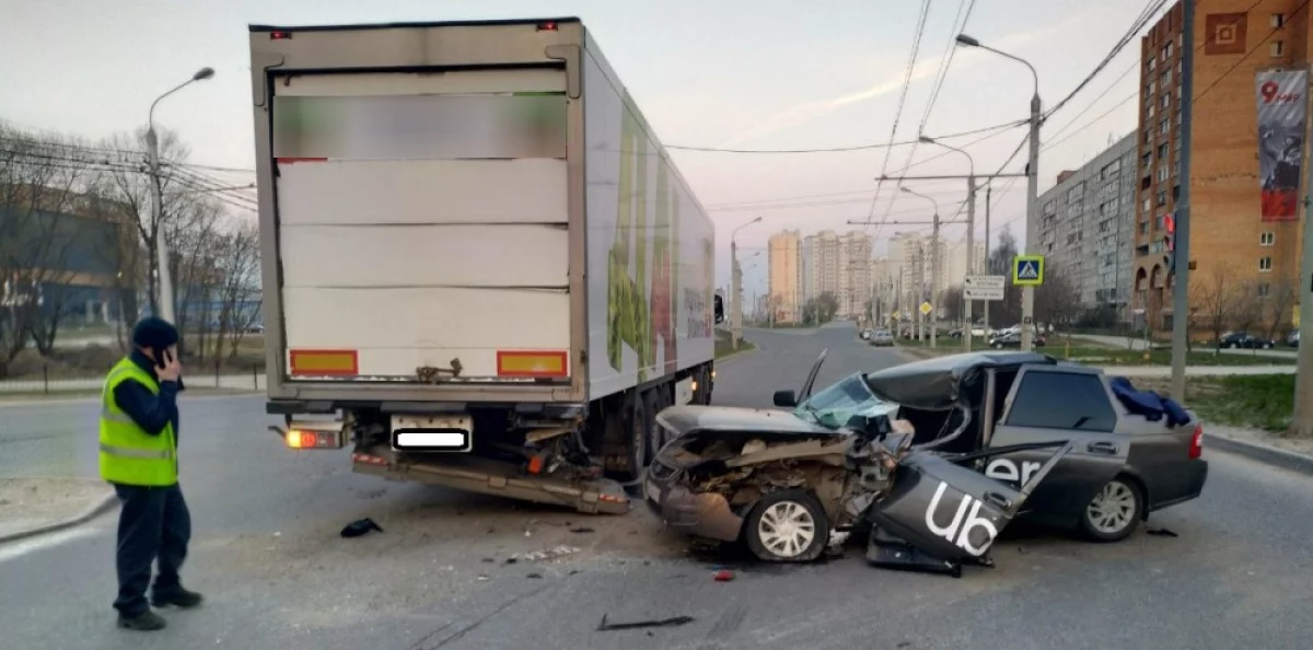 Около 5 утра в воскресенье, 21 апреля, «Лада» столкнулась с большегрузом MAN на улице Генерала Попова в Калуге.