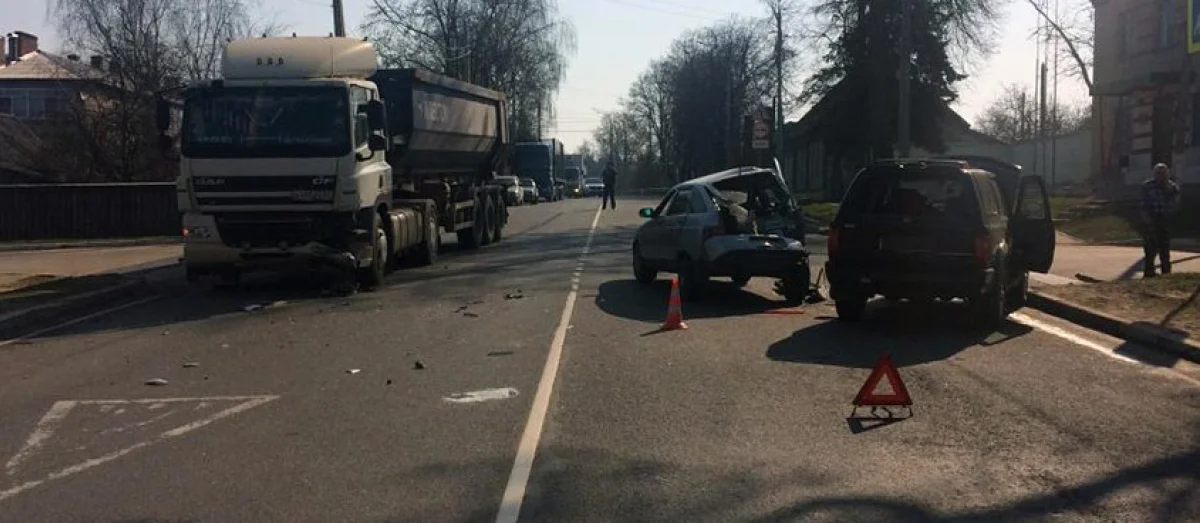 По предварительным данным, 23-летний водитель фуры «ДАФ» на перекрестке неравнозначных дорог не учел дистанцию до остановившейся впереди для поворота налево «Лады» и протаранил легковушку. После этого «Ладу» отбросило на встречную полосу, где она врезалась в «Грейт Волл».