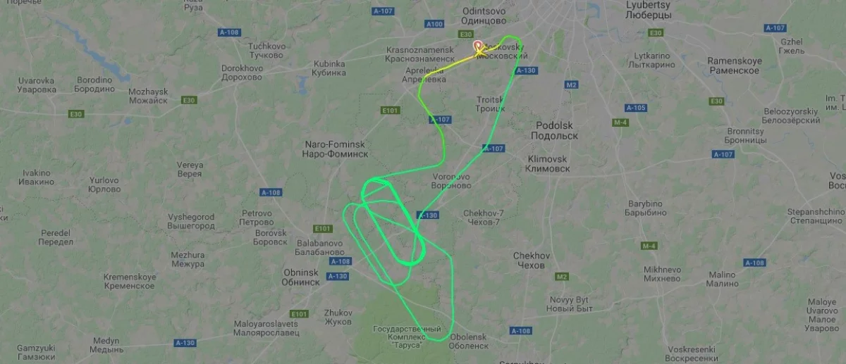 Почти два часа борт со 109 пассажирами, вырабатывая топливо, кружил в зоне ожидания – на границе Калужской и Московской областей. В 12:36 самолёт благополучно приземлился во Внуково.
