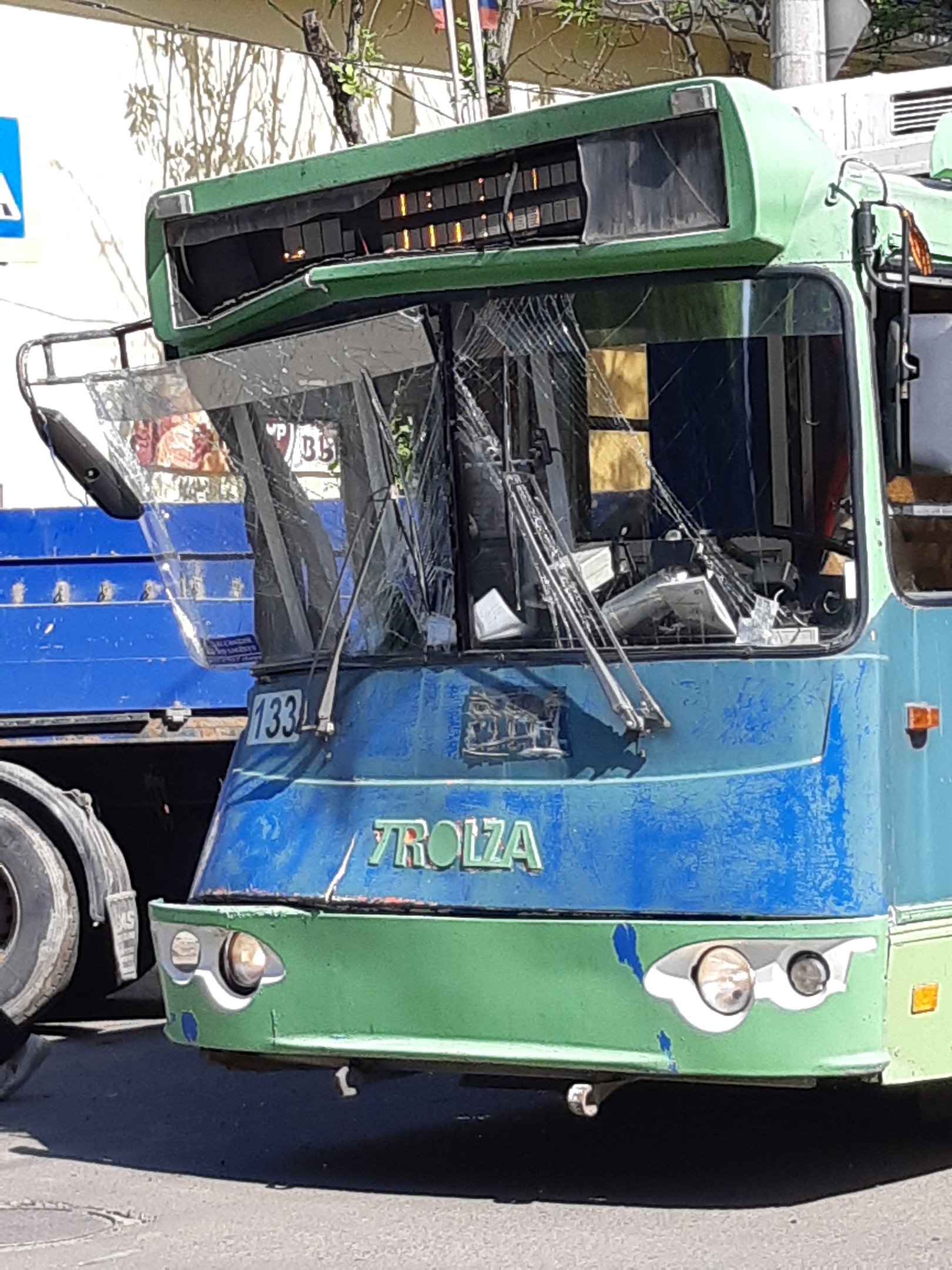 Около 10 утра в понедельник, 20 мая, на улице Рылеева в Калуге недалеко от перекрёстка с Суворова столкнулись троллейбус и грузовик.