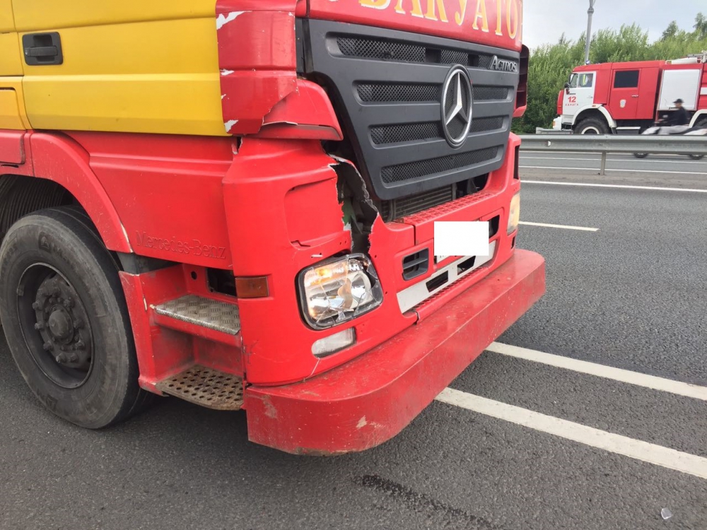 По предварительной информации, водитель грузовика «Мерседес» не успел остановиться перед пешеходным переходом и сбил женщину, пересекавшую дорогу по «зебре».