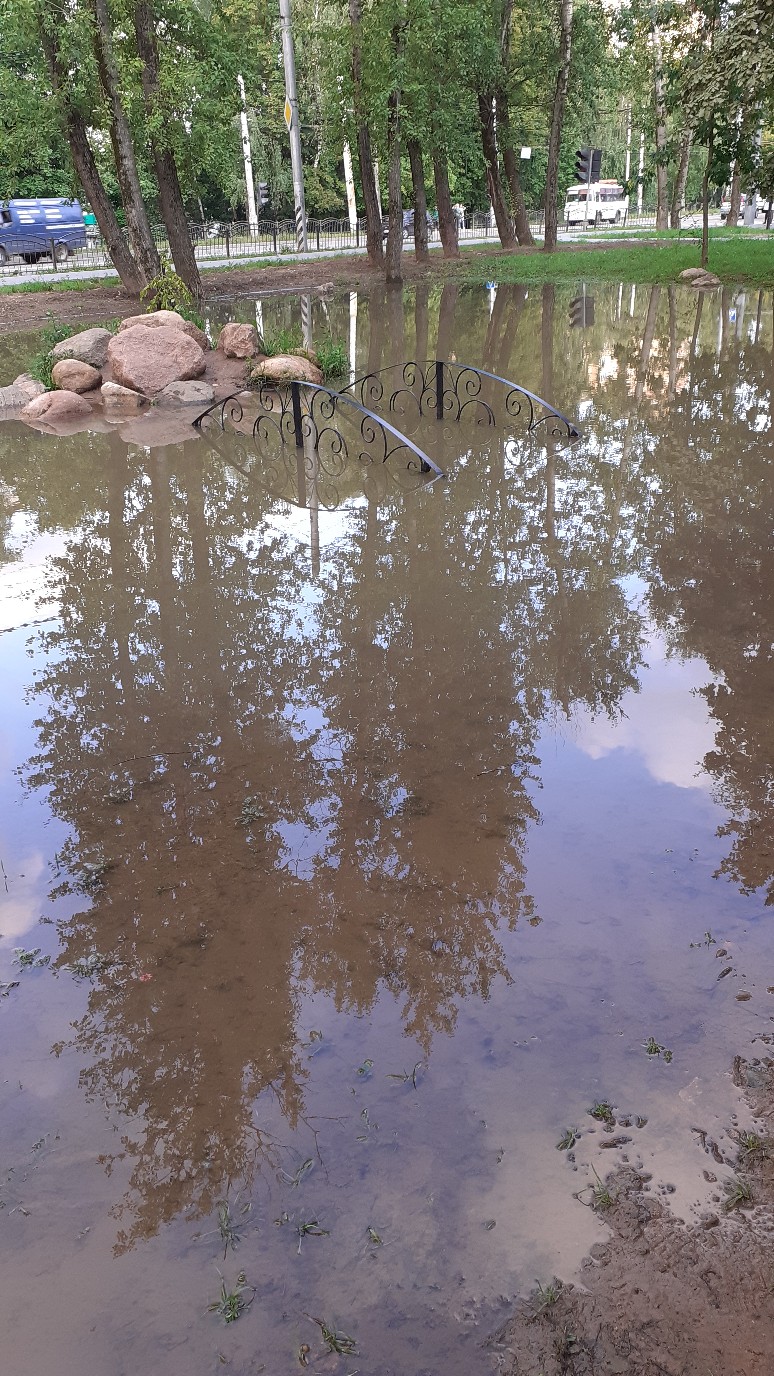 Дождливый июль вызвал настоящий потоп в сквере «Содружество» в районе пересечения улиц Кибальчича и Московской в Калуге. Зелёная зона, благоустроенная в прошлом году, превратилась в настоящее болото.