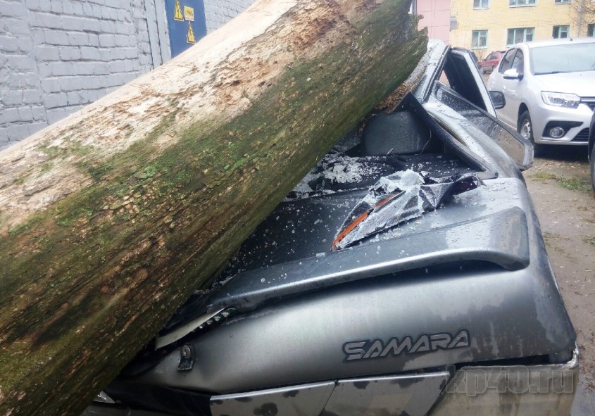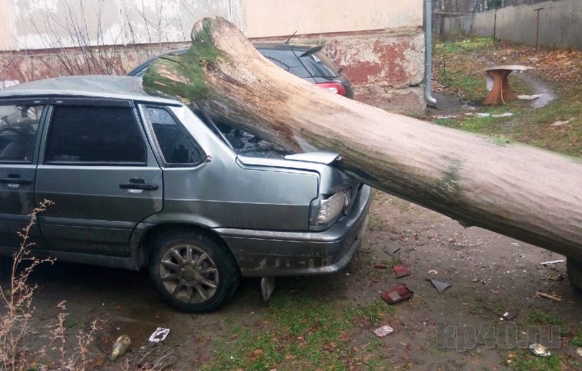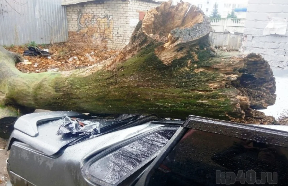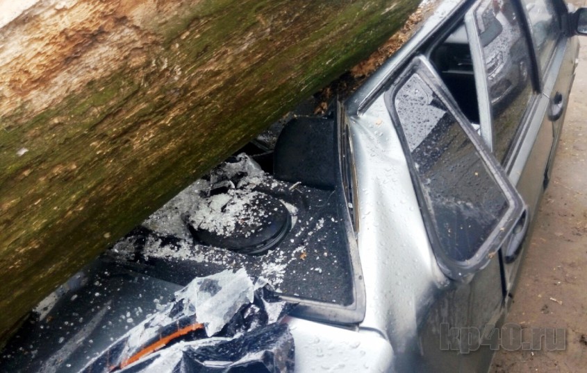 Упавшее дерево раздавило «Ладу» в центре Калуги