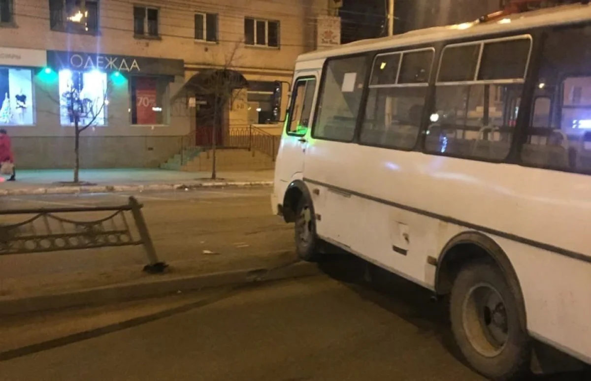 «Пазик» снёс ограждение на улице Кирова