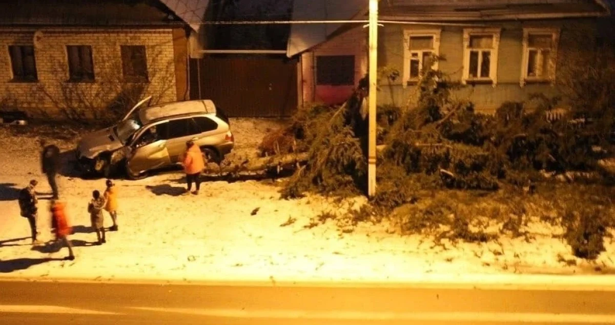 Водитель «БМВ» машиной срубил ёлку