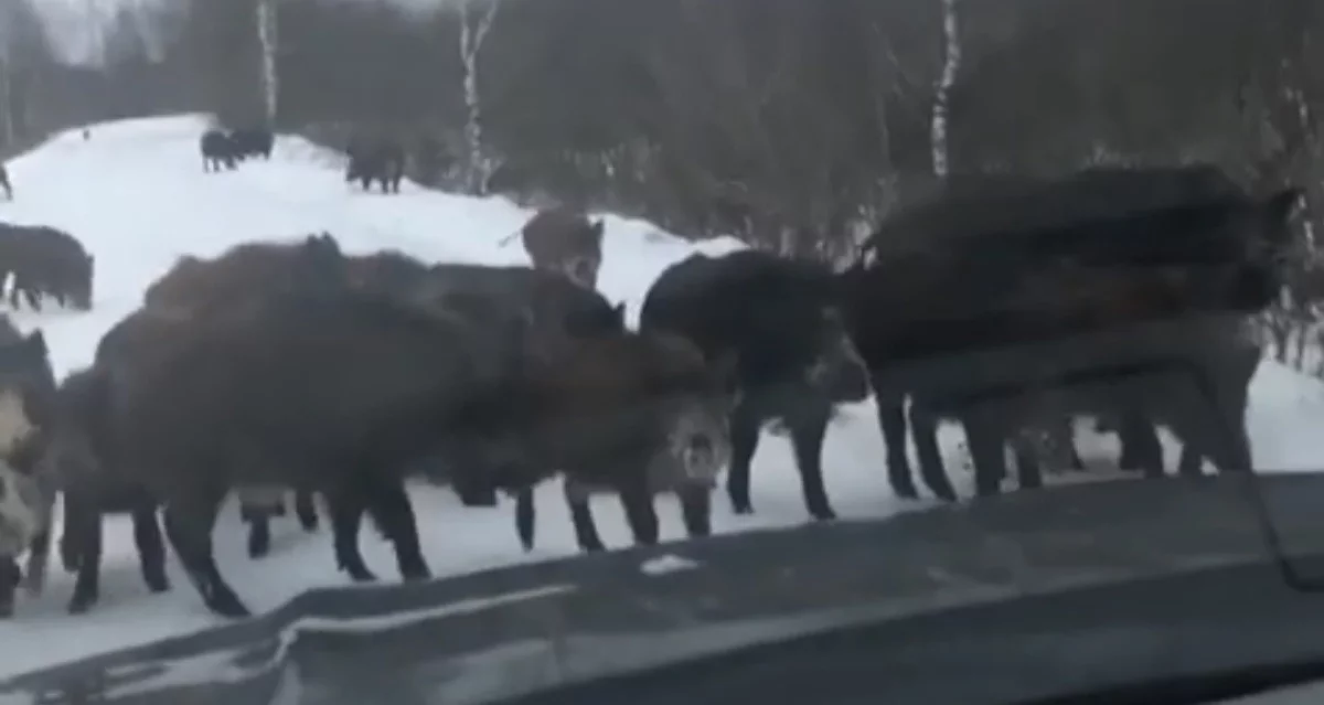 Во вторник, 14 января, стадо диких кабанов перекрыло дорогу врио главы администрации Малоярославецкого района Вячеславу ПАРФЁНОВУ. Видео он выложил на своей странице в I****gram.