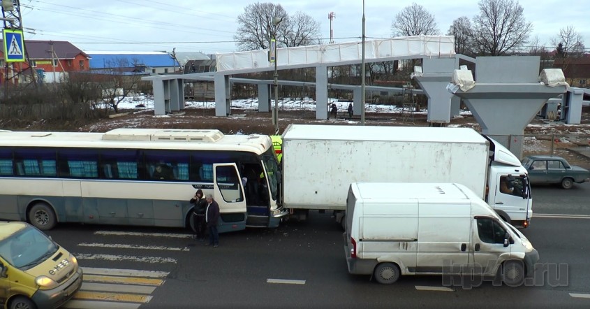 Рейсовый автобус врезался в грузовик, а тот насмерть сбил женщину