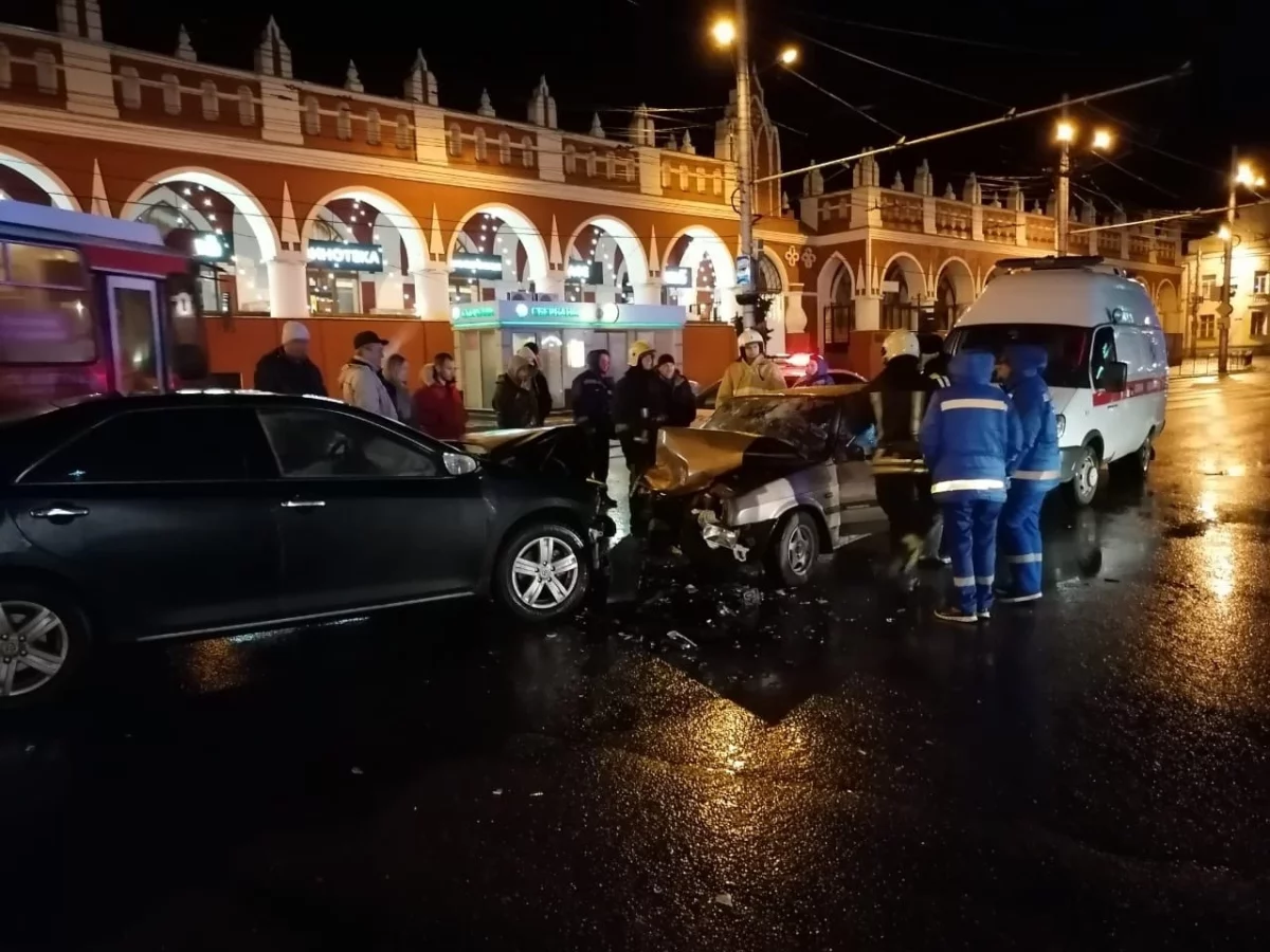 Поздно вечером во вторник, 21 января, «Лада» и «Тойота» столкнулись на площади Старый Торг рядом с главной ёлкой города.