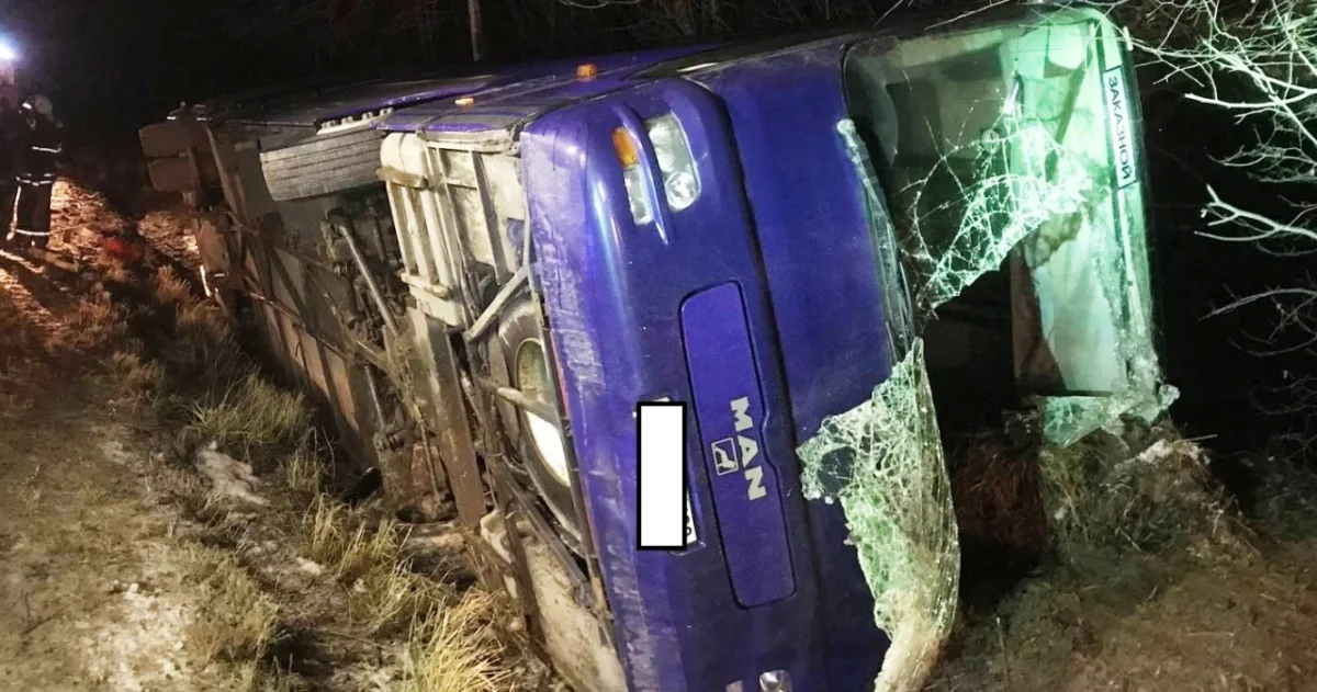 Напомним, по предварительным данным, 66-летний водитель автобуса МАН примерно в 18:40 при повороте не справился с управлением, транспортное средство съехало с дороги и опрокинулось.