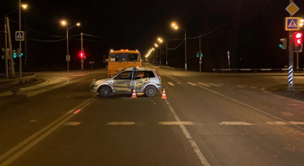 По предварительным данным ГИБДД, 59-летний мужчина за рулём грузовика двигался со стороны Калуги, выехал на перекрёсток на красный сигнал светофора и врезался в «Форд».