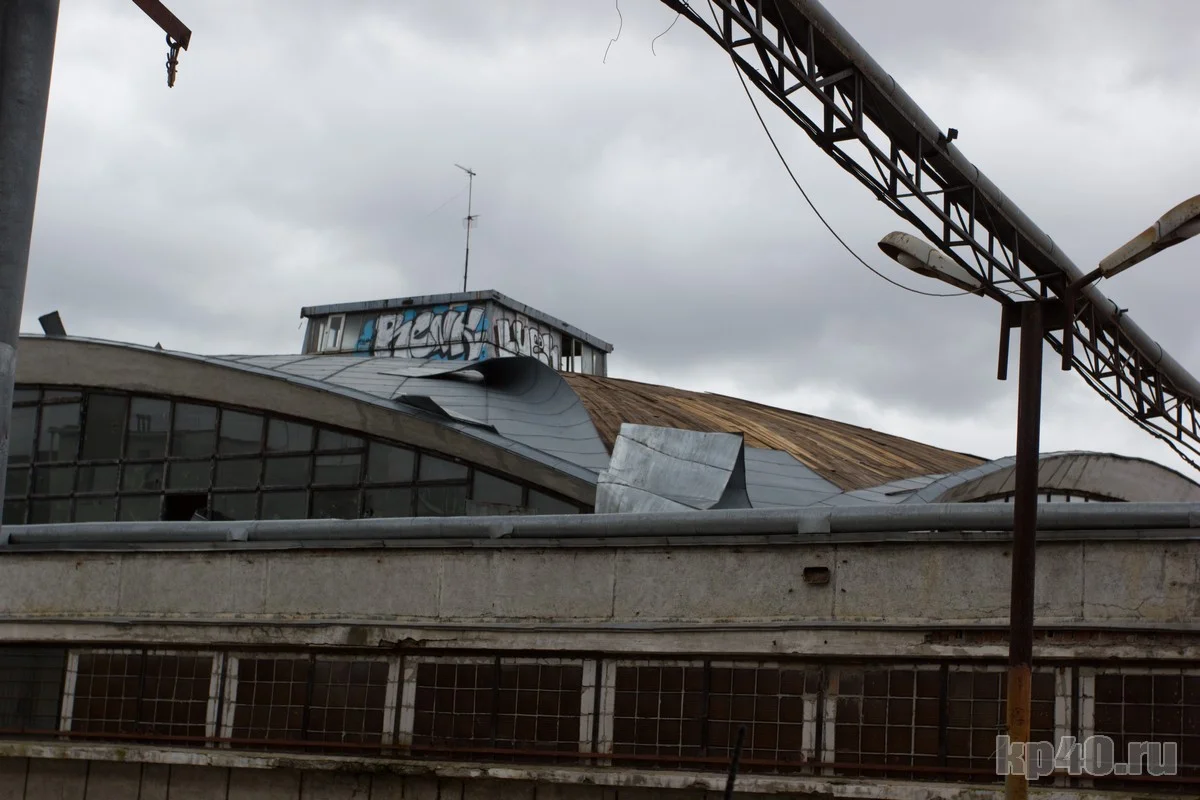 В центре Калуги ветер сорвал часть крыши с купола рынка