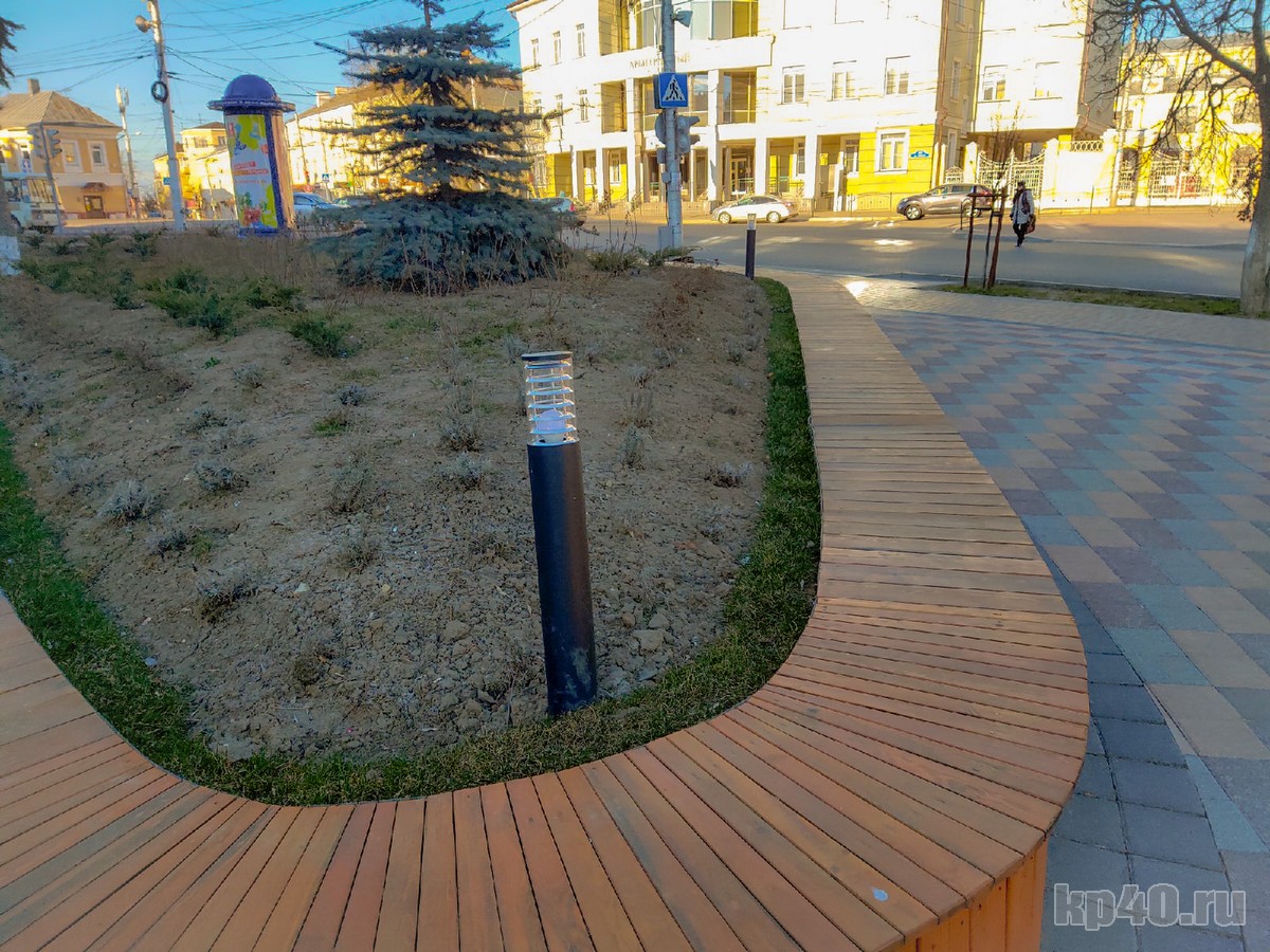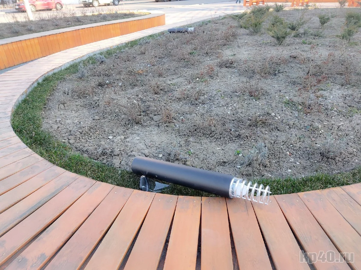 В сквере, открытом поздней осенью прошлого года, целой осталась только треть фонарей. Вместо остальных остались временные заглушки.