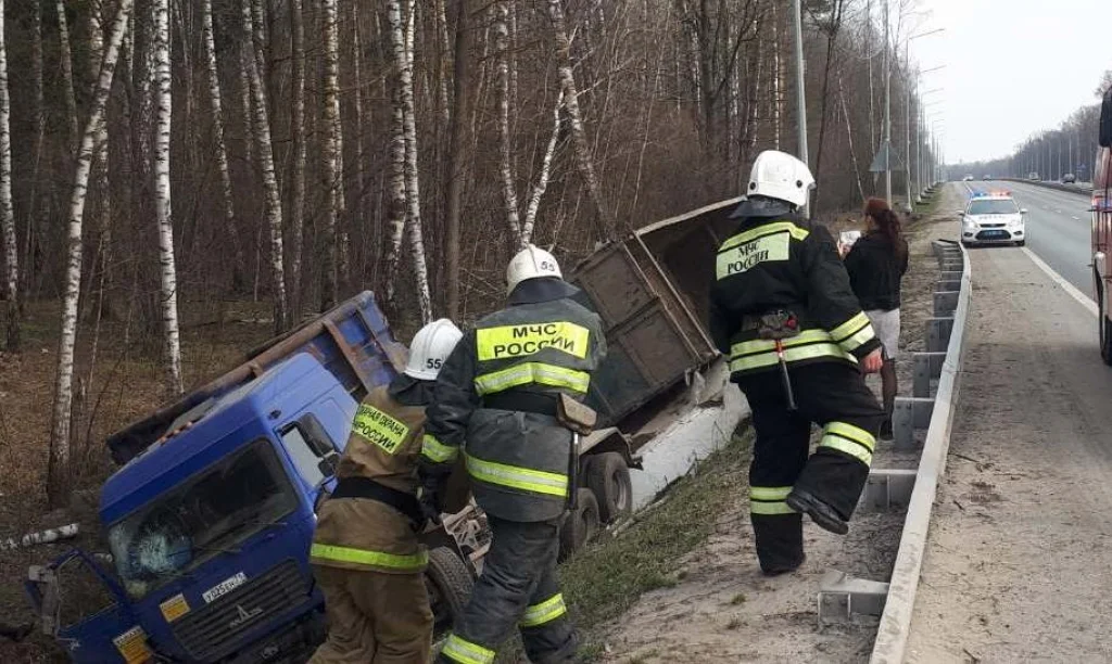 На окружной дороге в Калуге МАЗ вылетел в кювет