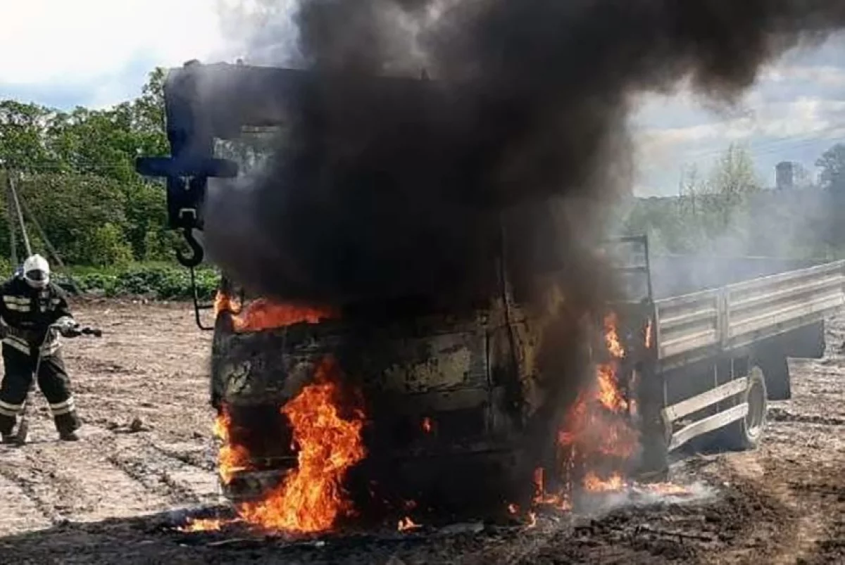 Грузовик с манипулятором сгорел в Козельске