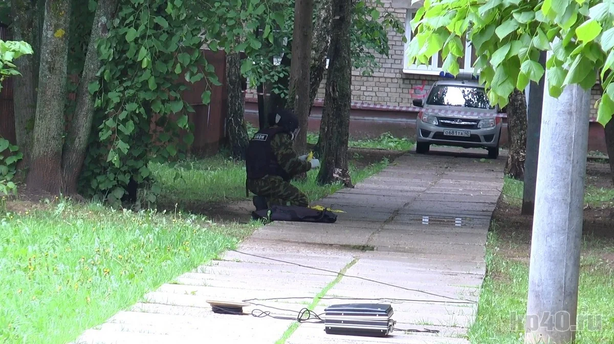 Пакет желтого цвета, из которого торчат провода, около 12:30 обнаружил охранник детского сада. Он сразу вызвал все специальные службы. На место прибыли сотрудники МЧС, ФСБ и полицейские. В ходе осмотра места кинологом собака не показала наличие тротила, однако руководством полиции было принято решение вызвать взрывотехников из Калуги. Периметр оцепили, а саму опасную находку накрыли бронежилетами.