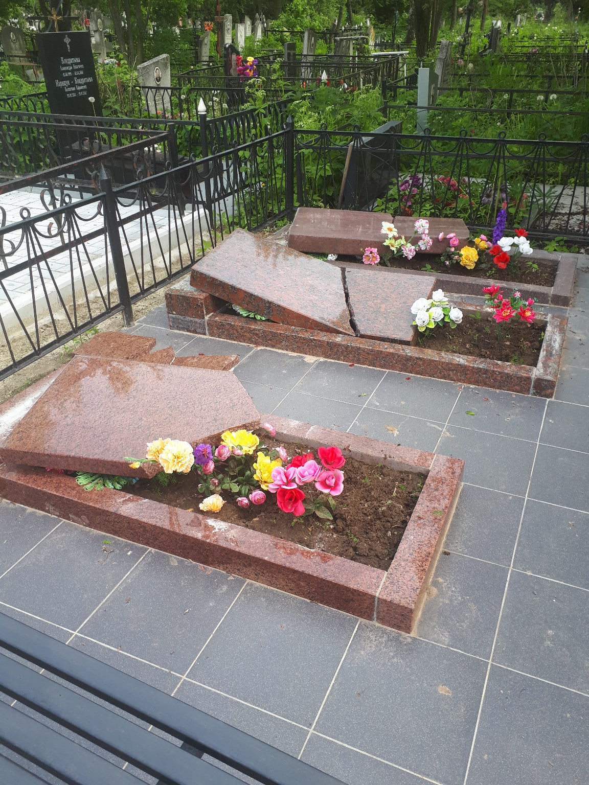 - Трудно передать словами свои чувства. Пришли на могилы родителей помянуть и помолиться. И увидели такое. Боль, шок и ужас. Калужане, что происходит? На памятниках следы грязных ног. Слёзы душат, - написала Анна С.