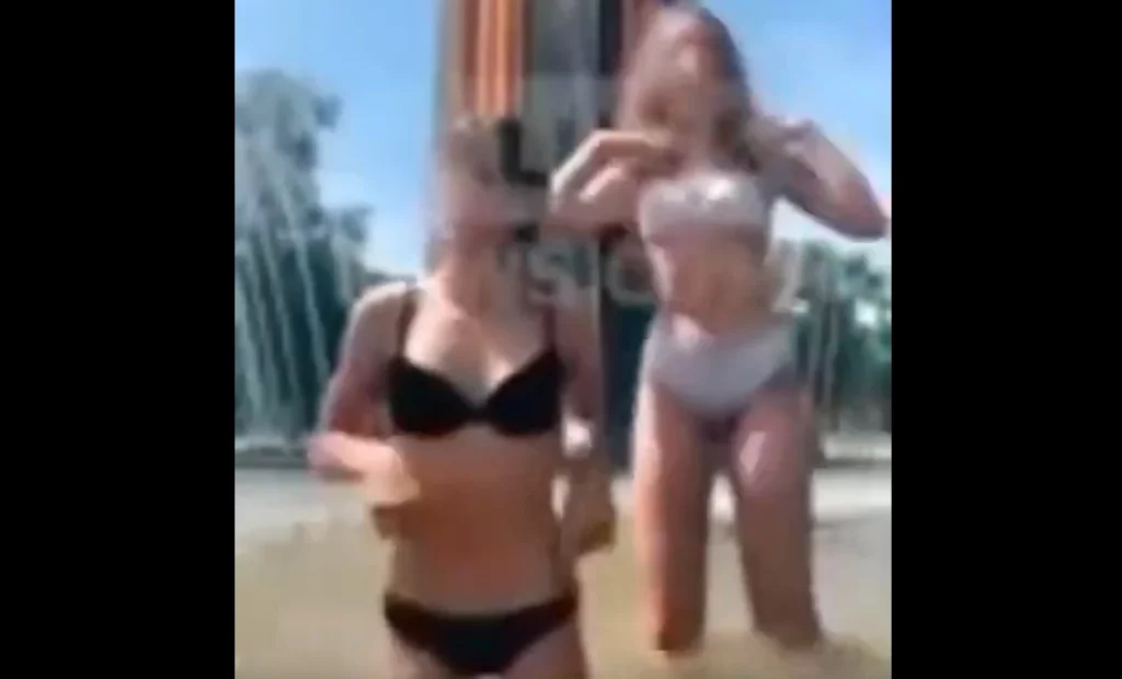 В Калуге опубликовали видео с девушками, которые в нижнем белье забрались в фонтан на площади Победы и исполнили некий танец.