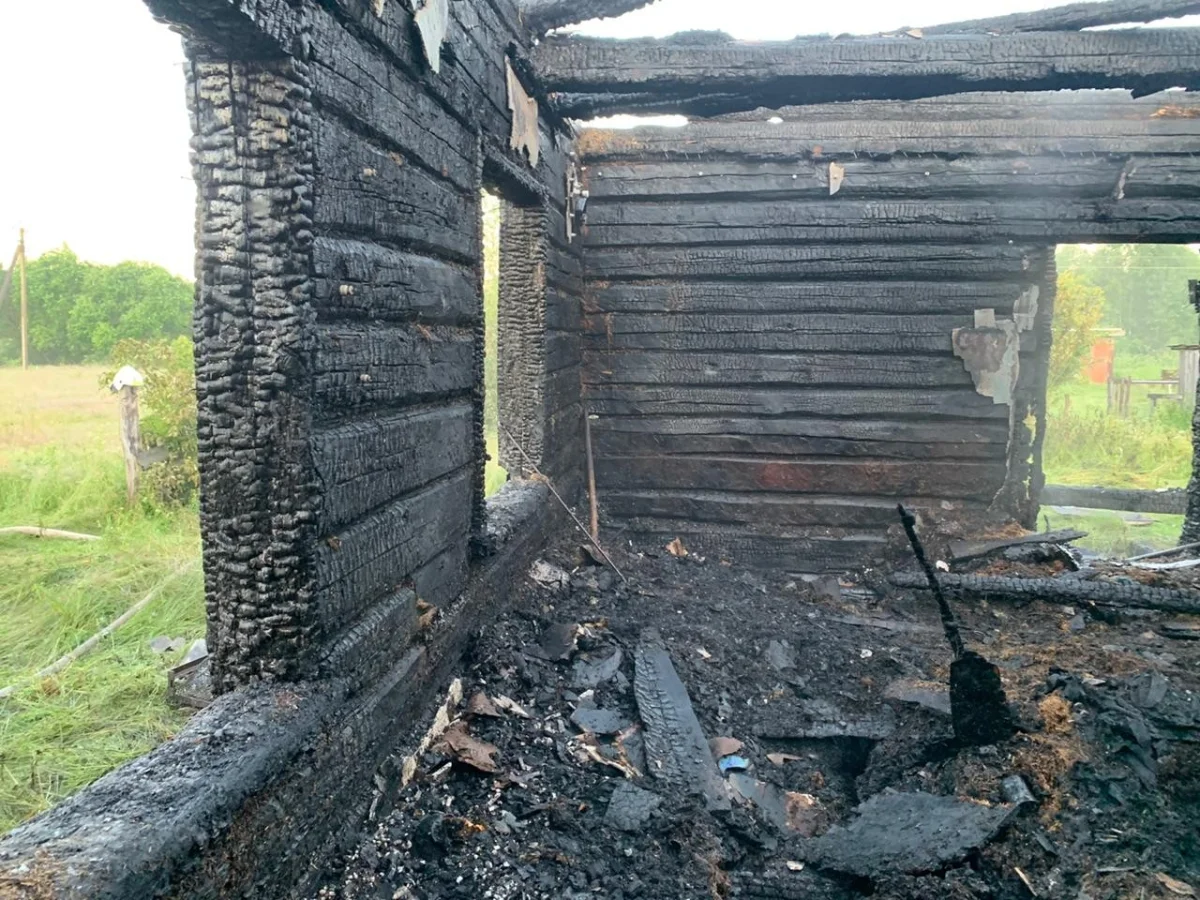 Загорелся деревянный жилой дом. Огонь уничтожил почти всё строение.