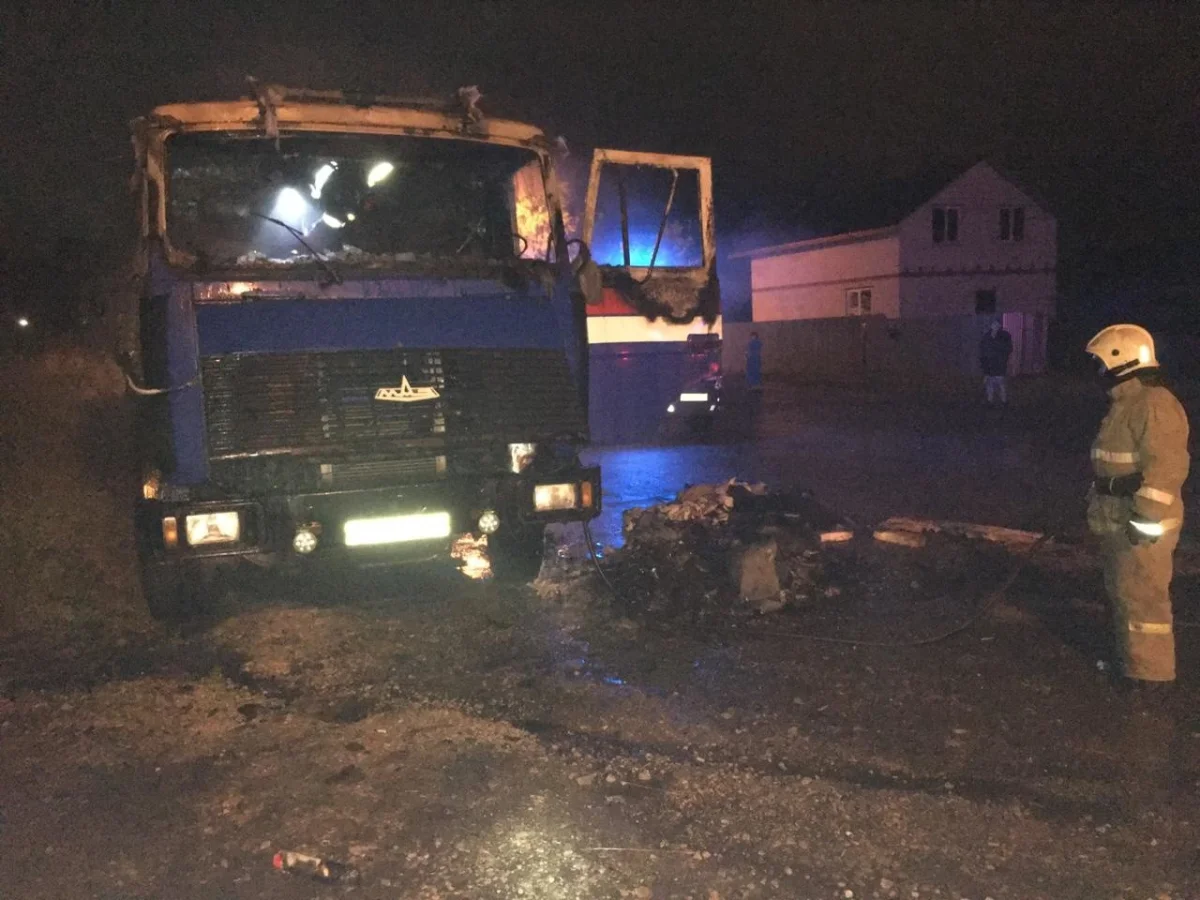 Ночью в среду, 1 июля, в деревне Колюпаново на территории Калуги произошёл пожар. Горел грузовой МАЗ.