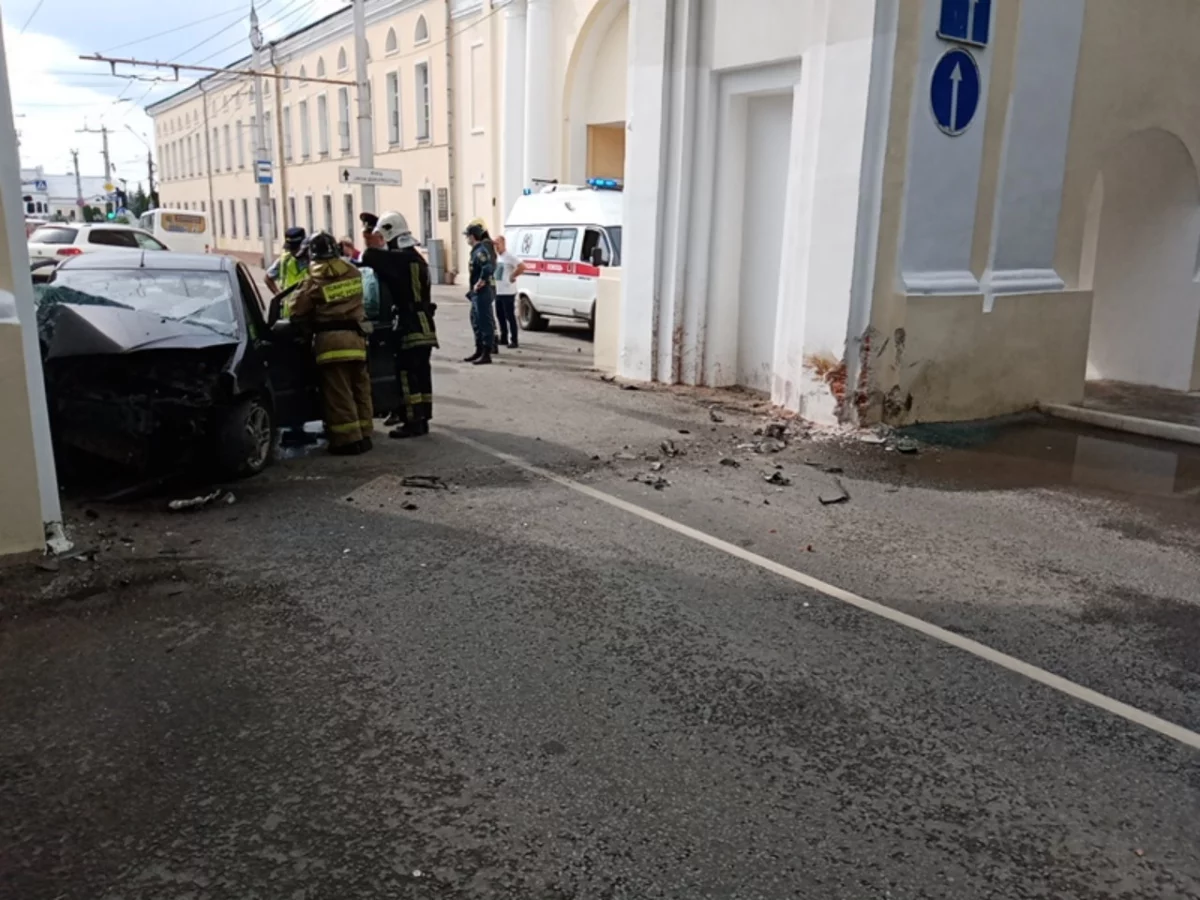 Утром в субботу, 4 июля, на Старом Торге в Калуге легковой автомобиль «Форд» врезался в арку рядом с центральным парком культуры и отдыха.