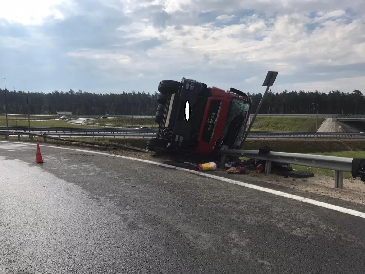 Около 8 утра в понедельник, 17 августа, на развязке, где пересекаются дороги Калуга – Медынь и трасса М3 «Украина», перевернулся грузовик МАН.