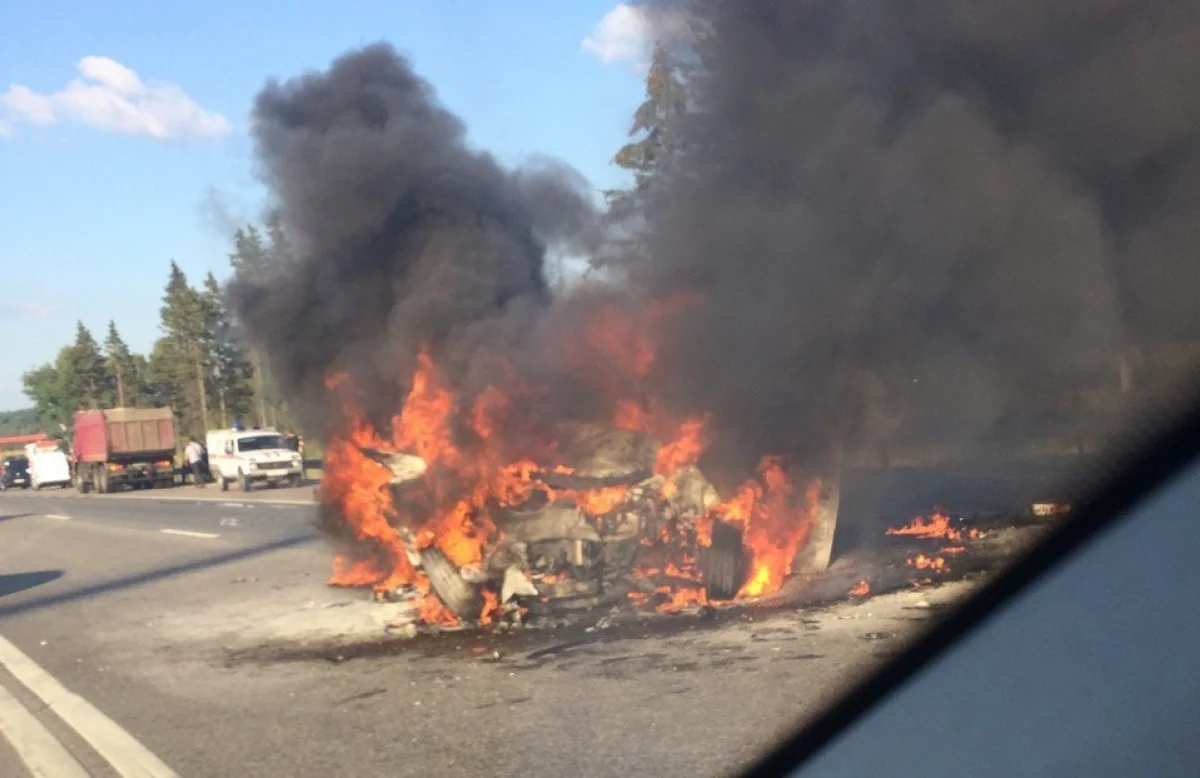 В Калужской области «Рено» сгорел после жуткого ДТП