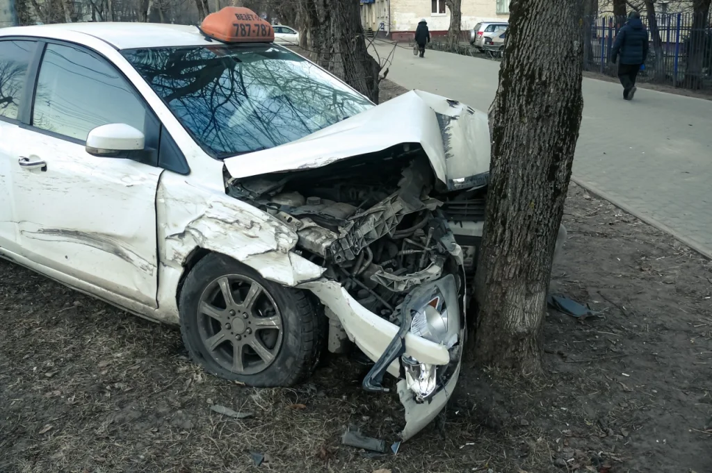 От удара «Форд» вылетел на зеленую зону и врезался в дерево.