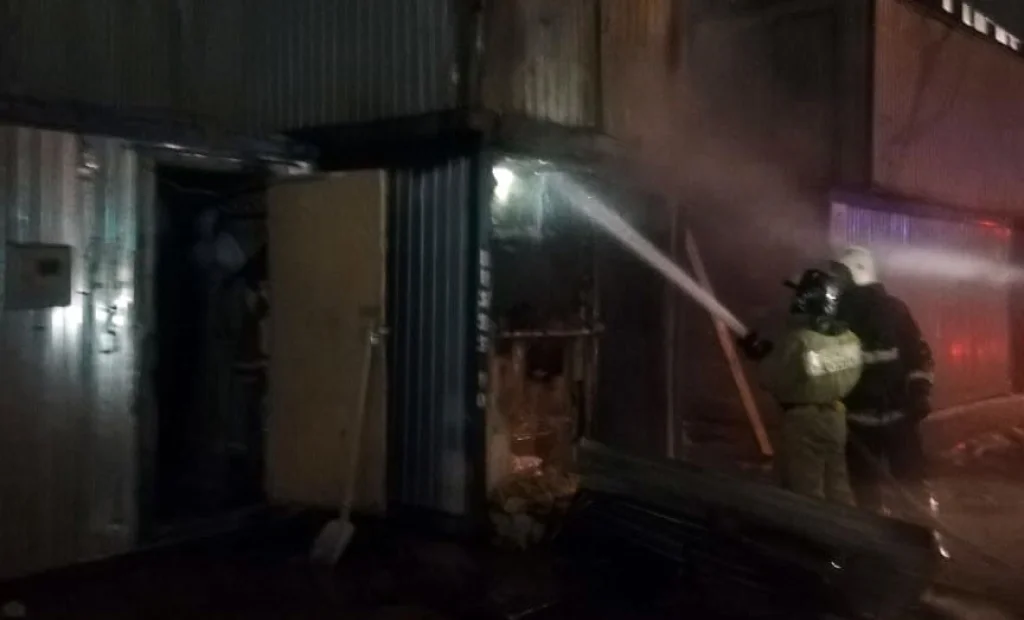 Две строительные бытовки сгорели на стройке Дворца спорта в Калуге