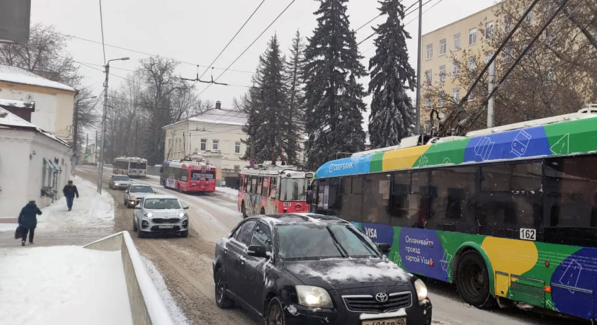 В Калуге троллейбусы остановились на улице Пушкина из-за ДТП