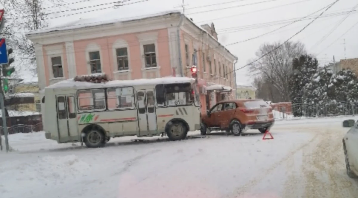 В Калуге рейсовый автобус столкнулся с легковушкой