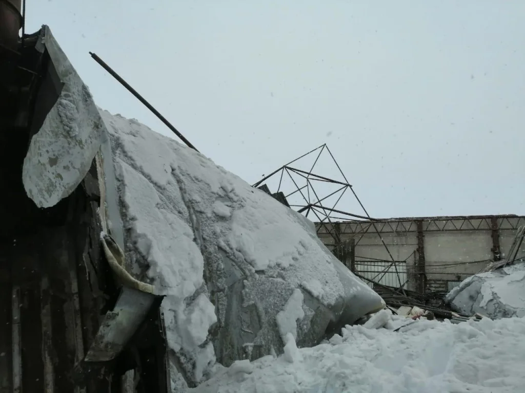 Опубликованы фото мощного обрушения крыши под тяжестью снега в Людиново