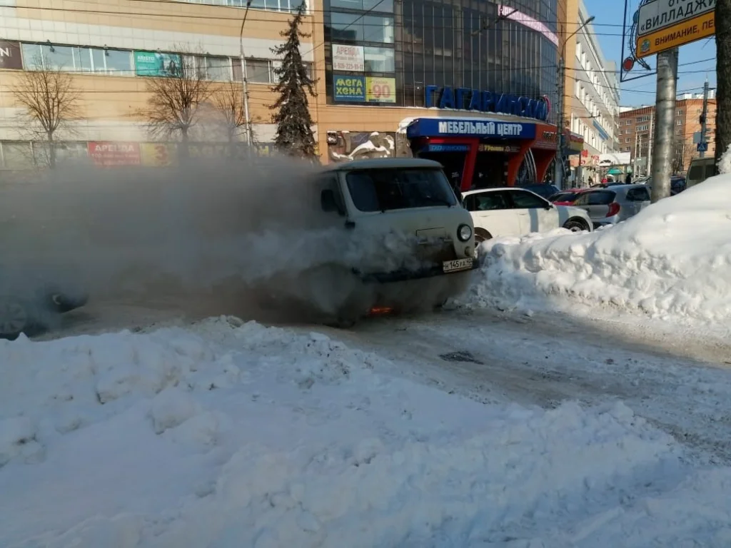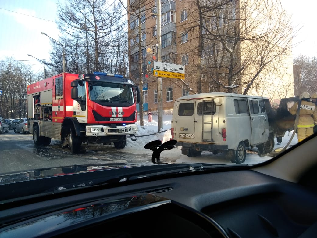 Около 11:00 в четверг, 18 февраля, на улице Гагарина в Калуге недалеко от сквера Мира загорелся автомобиль УАЗ.