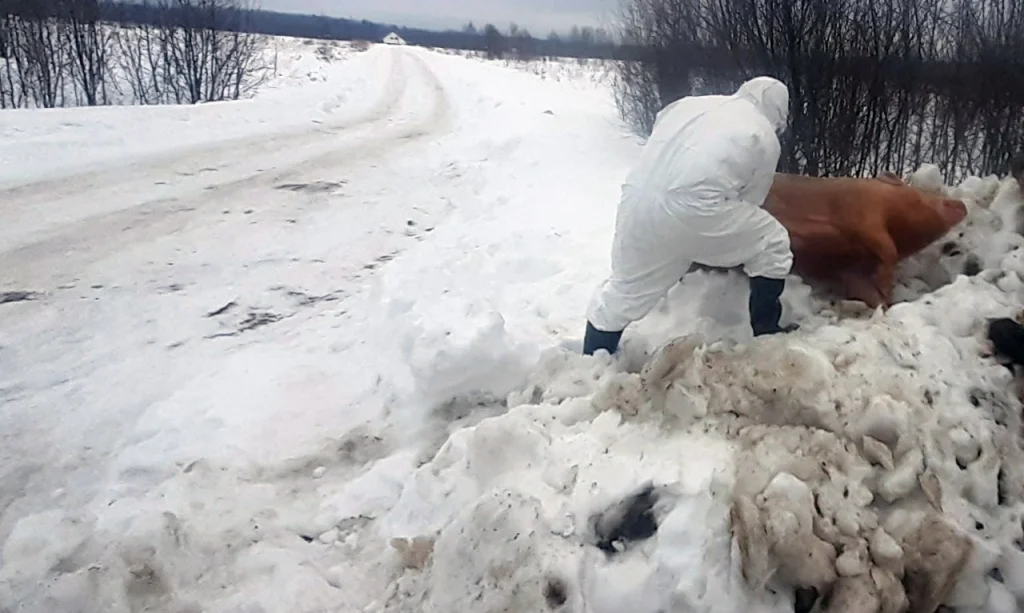 В Калуге проверяют на АЧС труп свиньи, обнаруженный возле дороги