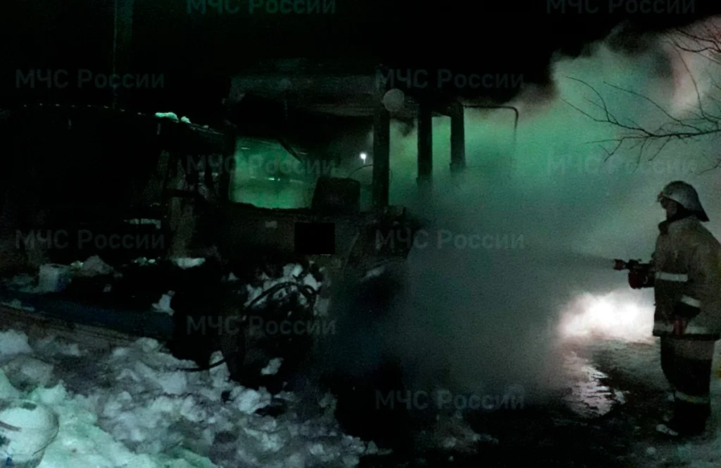 В ночь на 8 марта, в 1:39 в дежурную часть МЧС в Козельском районе поступило сообщение о возгорании трактора.