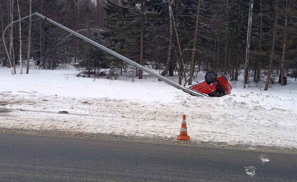 По предварительной информации, 36-летняя женщина за рулем «Мазды 323» двигалась со стороны Калуги и не справилась с управлением. Машина съехала в кювет, врезалась в столб и перевернулась.