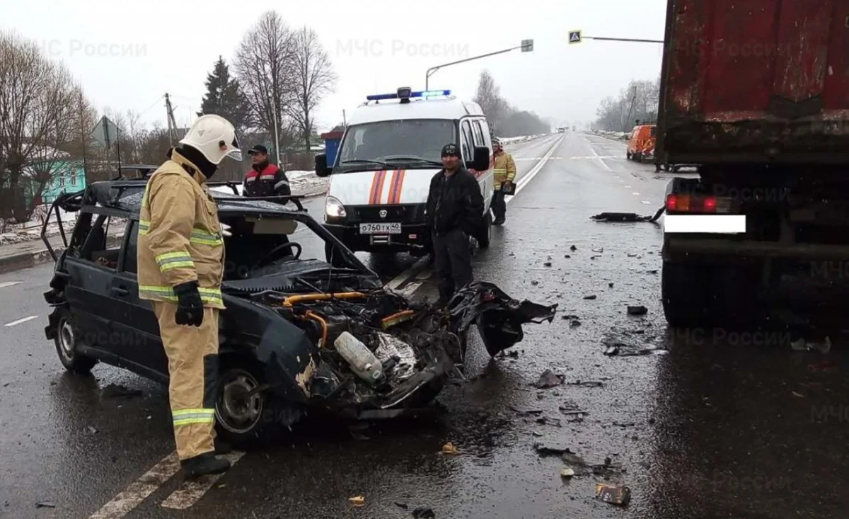 UPD. В УГИБДД по Калужской области сообщили подробности. По предварительным данным, водитель грузового автомобиля «Мерседес Актрос» двигался со стороны Москвы, не соблюдал безопасную дистанцию и врезался в ехавшую впереди «Ладу». От удара легковушку отбросило на встречную полосу под КамАЗ. Различные травмы получил 36-летний водитель «Лады».
